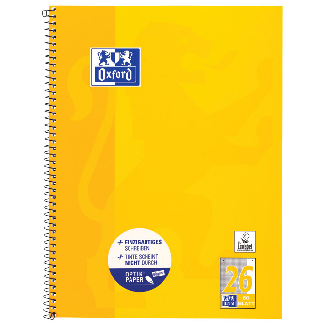 BLOK KOLEGIJ Marka: OXFORD Detalji: karo; sa zaglavljem i bijelom marginom na desnoj strani;A4+ s 4 rupe i perforacijom; 80 listova; čvrste, kartonske korice; dvostruki spiralni uvez omogućuje 360° okretanje i potpuno pisanje svake stranice; OPTIK PAPER+®, jedinstvena udobnost pisanja, tinta ne prolazi kroz papir; bijela naslovnica na početku i kraju spiralnog bloka; kompatibilan sa scribzee aplikacijom za skeniranje, organiziranje i dijeljenje bilješki SKU: 000062267