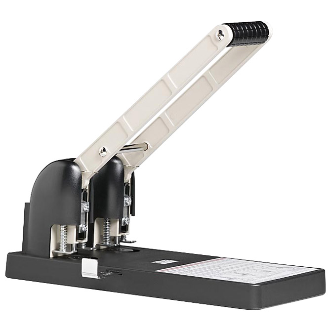 BUŠAČ Marka: Detalji: ;2 rupe; buši do 150 listova ili debljina 15 mm; razmak između rupa je 80 mm; ima metalni graničnik za formate: A4, A5, A6,…; promjer noža za bušenje: 6 mm; oštri noževi omogućuju bušenje bez napora; lagana i čvrsta baza; u kartonskoj kutiji dimenzije 34x16x15,5 cm; težina: 2,10 kg SKU: 000009505