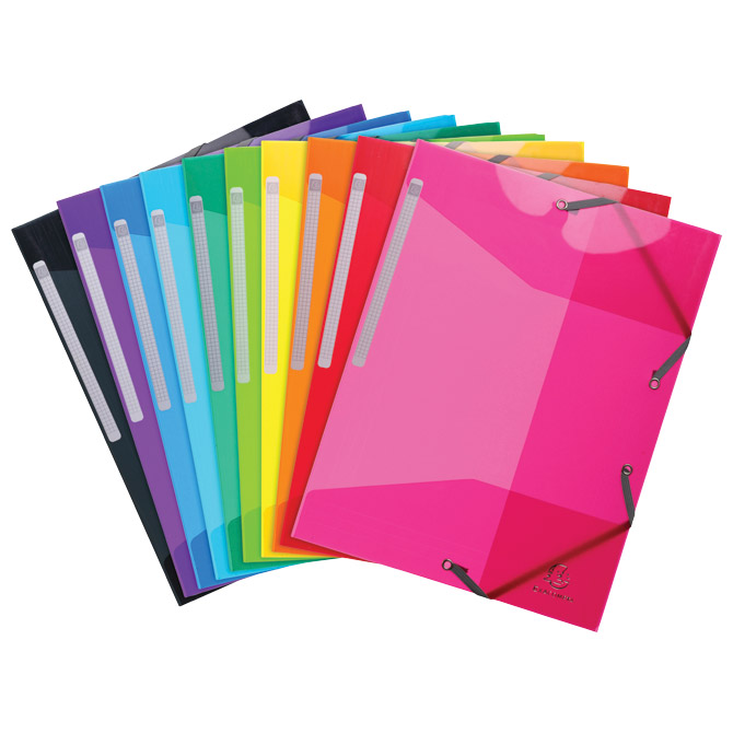 FASCIKL Marka: EXACOMPTA Detalji: ; format: A4; dimenzija: 240×320 mm; PP: sjajni; debljina: 0,5 mm; kapacitet: 250 listova 80 g/m2 papira; 3 klapne, gumice (sive) i etiketa; 10 boja