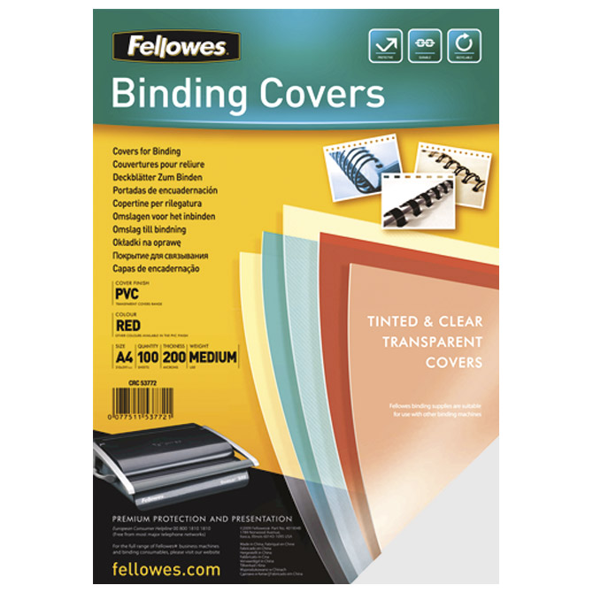 KORICE ZA SPIRALNI UVEZ Marka: FELLOWES Detalji: 150 mikrona;format: A4; PVC; set od 100 komada SKU: 000019701