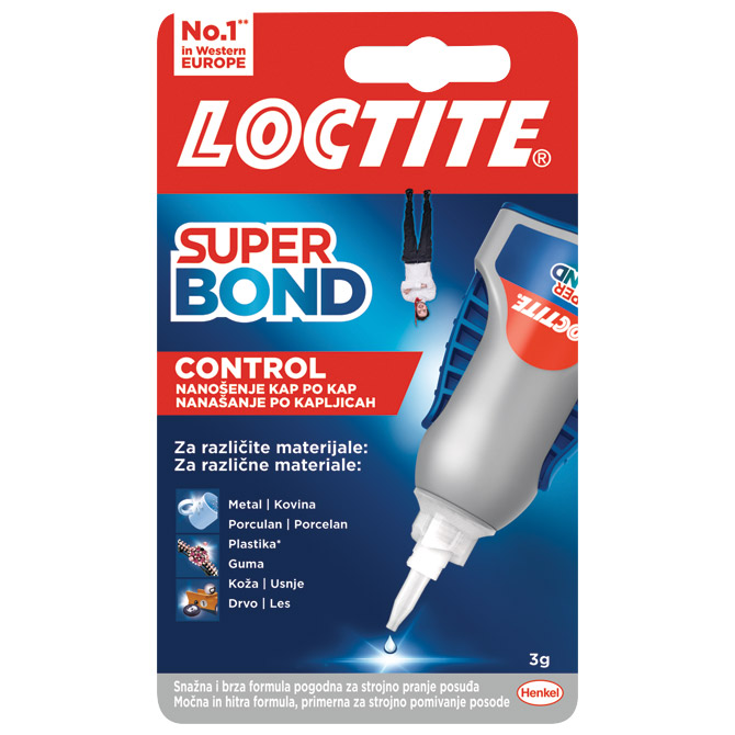 LJEPILO TRENUTAČNO Marka: HENKEL Detalji: ;tuba; tekuće; za: porculan, gumu, drvo, kožu, metal ili plastiku (osim PE i PP); nije za staklo, polistiren i sintetička vlakna; lijepi unutar nekoliko sekundi; otporno na udarce i vodu; kontrolirano doziranje (nanošenje kap po kap); čep protiv začepljenja; 80 % reciklirana ambalaža; 3 g; blister SKU: 000047725