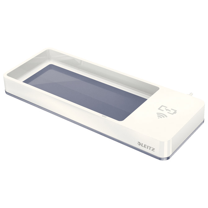 Detalji: www.leitz.com/inductivecharging;mjesto za odlaganje pisaćeg pribora, mobitela, spajalica…; sa indukcijskim punjačem (isključivo za bežično punjenje); baza se spaja kabelom (kabel je uključen) u USB port (u laptop, USB HUB, računalo…); ušteda energije (prestaje puniti kad je baterija na 100 %); ulaz: 5V/1A, izlaz max: 1A; LED indikator koji označava da je ispravna pozicija za punjenje; dimenzija: 266x101x28 mm