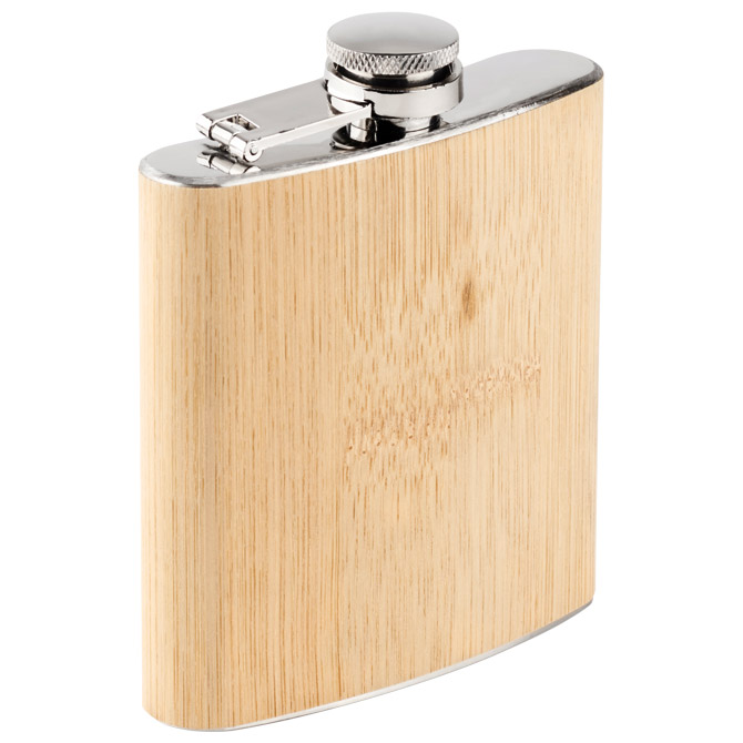 Detalji: ;175 ml; metalna; s elegantnom završnom obradom od bambusa; sigurnosni čep; dimenzija: 11x9x2 cm