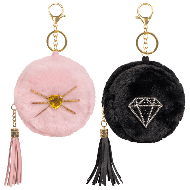 PRIVJESAK ZA KLJUČEVE Marka: BRUNNEN Detalji: ;fi:100 mm; glamurozni privjesak; s zlatnim detaljima, dijamantom i kožnim resama; elegantan i zabavan; opremljen praktičnim patentnim zatvaračem; za sitniš, ključeve ili slušalice; 2 boje: roza i crna SKU: 000055170