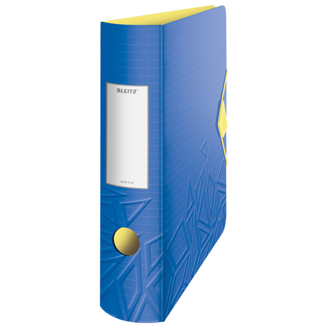 REGISTRATOR SAMOSTOJEĆI Marka: LEITZ Detalji: žuta; format: A4; zaobljen hrbat sa samoljepljivom etiketom; hrbat: 82 mm; dimenzija: 312x318x82 mm; kapacitet: 500 listova 80 gramskog papira; presvučen obostrano laganim PP/Polyfoam izuzetno izdržljivim materijalom s utisnutom izvanrednom teksturom s vanjske strane; atraktivno zatvaranje s gumicom i rupa za prst na hrptu za jednostavno rukovanje i siguran transport dokumenata; patentirani mehanizam sa polugom koja se otvara za 180° i time omogućuje 50 % šire otvaranje, 20 % brži rad i istovremeno odlaganje na obadvije strane; s unutarnje strane ima: 1 proziran džep za odlaganje: CD-a, vizitki, spisa,…i 1. mjesto za olovku; linija Active Urban Chic pruža izražene kontrastne i odvažne boje koje u kombinaciji s laganim materijalom i ergonomskim dizajnom odgovaraju aktivnom načinu života, nastala iz fuzije stila i funkcionalnosti; 5 godina garancije na mehanizam