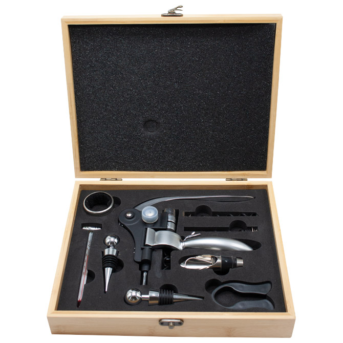 SET ZA VINO Marka: Detalji: ;9 dijelova; drvo bambus; dimenzija: 21,5×26,5×6 cm SKU: 000055596