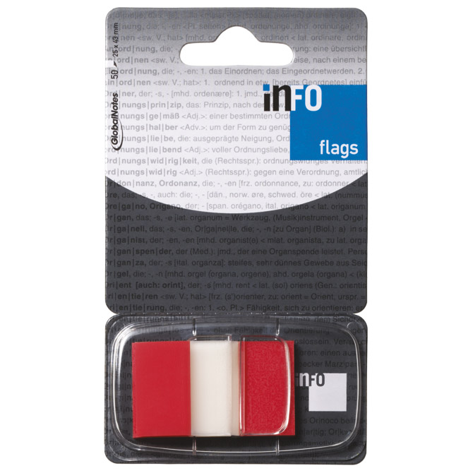 ZASTAVICA SAMOLJEPLJIVA Marka: GLOBAL NOTES Detalji: ;dimenzija: 25×43 mm; 50 zastavica; poliester; mogućnost višekratnog korištenja; za označavanje stranica i dokumenata; blister SKU: 000007340